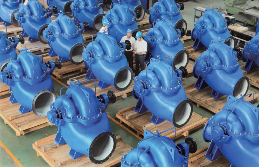 The double suction pump enters water from both sides, and the pump has good cavitation performance, high efficiency and energy saving